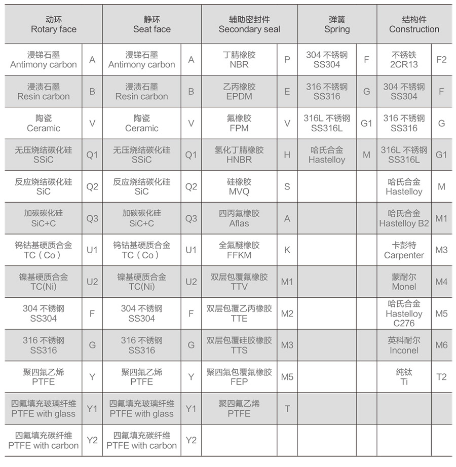 ② Type of mechanical seal 機封型號;